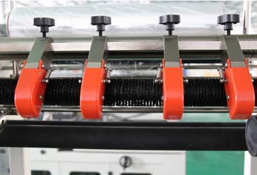 5.自動(dòng)送料,制袋長(cháng)度由電眼和計時(shí)器的組合自動(dòng)控制;配有廢料感應電機,可自動(dòng)卷取廢邊。